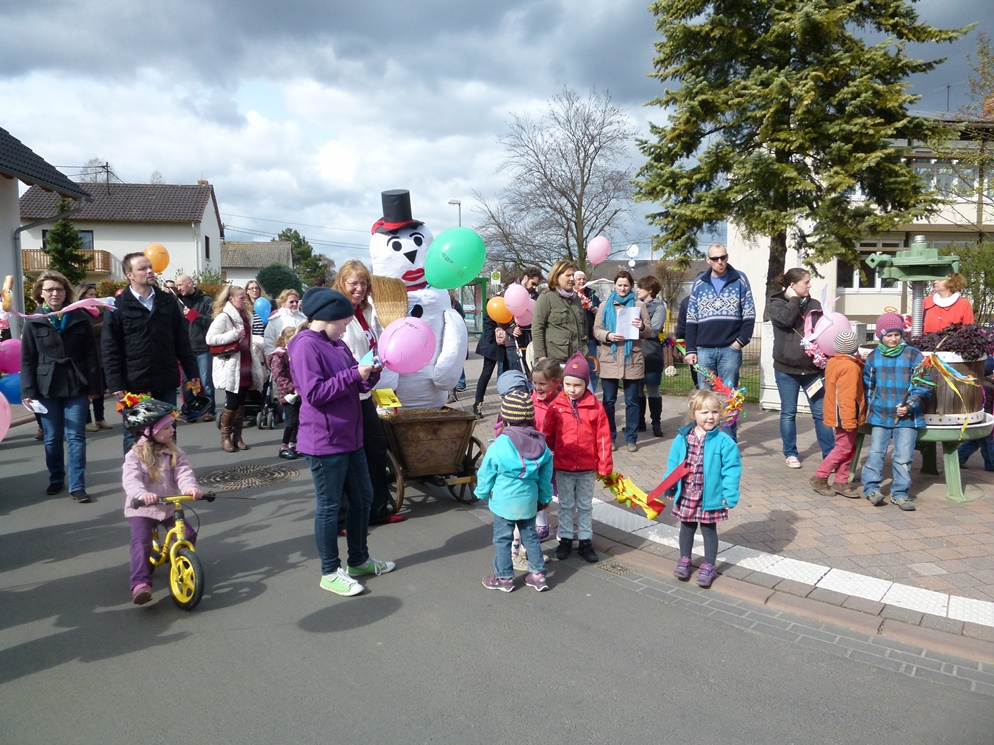 Viele Kinder waren mit Ihren Eltern gekommen und konnten einen schönen Nachmittag verbringen. Wulf Abigt erzählte den Kindern vom Stabausfest und stimmte mit seinem Akkordeon einige Frühlingslieder an. Der große Umzug mit dem schönen selbst gebastelten Schneemann führte dann wie immer ins Feld, wo die Feuerwehr schon bereit stand. Dann war es soweit, der Schneemann wurde angezündet, um das Winterende einzuleiten. Nun kann der Frühling kommen.