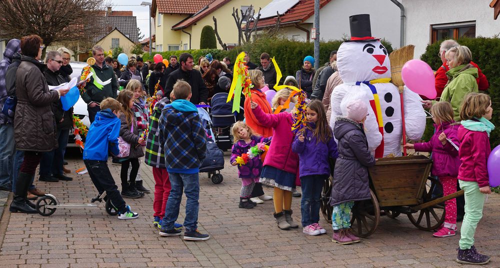 Wulf Abigt erzählte den Kindern mit anschaulichen Beispielen den Lauf der Jahreszeiten und dann ging es mit dem schönen Schneemann durch die Offsteiner Straßen.Traditionell endete der Umzug mit dem Verbrennen des Schneemannes. Die Kinder und Eltern sangen fleißig Frühlingslieder, damit auch bald die Sonne bei uns bleibt. Ein wenig hat man sie schon gesehen, nun müssen die Temperaturen noch etwas in die Höhe klettern und der Frühling kann Einzug halten. Jedes Kind erhielt kostenlos einen von Gudrun Küstner selbst gebastelten Stabausstecken und eine leckere Brezel.