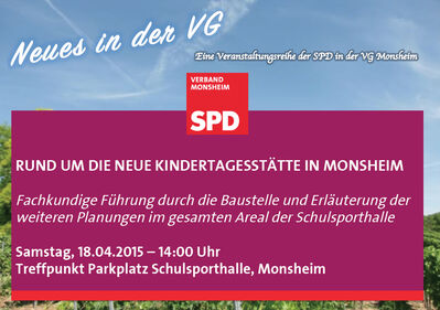 Als nächste Veranstaltung in dieser Reihe wollen wir die neue Kindertagesstätte und das gesamte Areal rund um die Schulsporthalle in Monsheim unter fachlicher Begleitung besichtigen und den aktuellen Stand der Planungen aufzeigen.